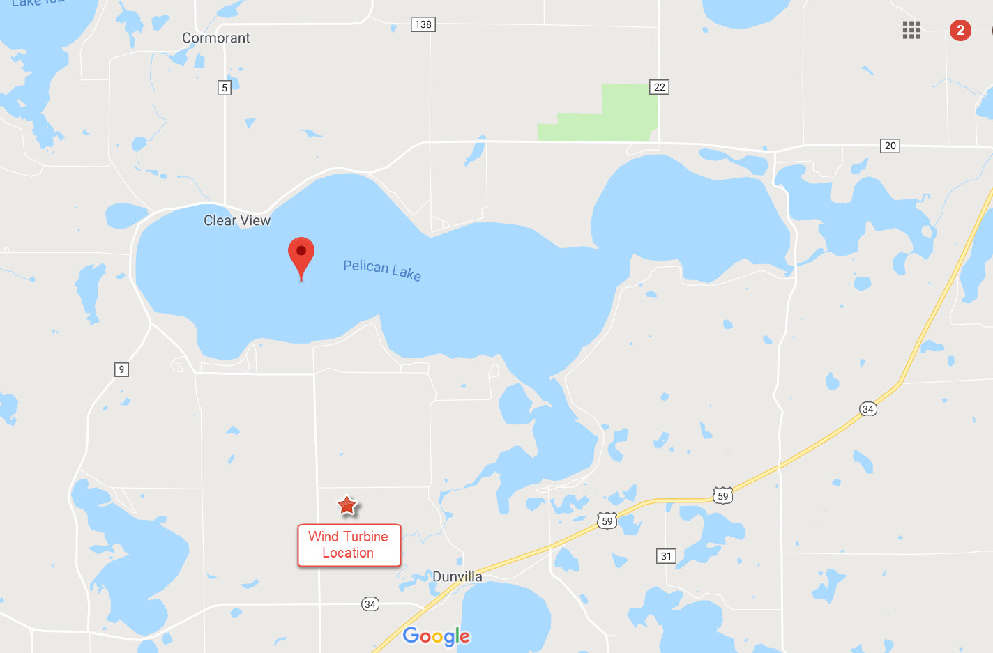 Michael Neustel (owner of a lake home on Pelican Lake) personally operates this website without association with any other individual(s) or entity(ies). This website provides his opinions and information as best understood (and as information is received and best understood at the time) relating to the wind turbine project which is not guaranteed to be correct or accurate – i.e. you need to investigate and make up your own opinion based on a number of sources of information as to whether or not the information on this website is accurate and whether the wind turbine project is reasonable. If any information on this site is inaccurate or if you have additional information, please submit the same via the Feedback page so I can update the website immediately! I have directly requested feedback on this website from Dunn Township, LREC and Juhl Energy. I have received helpful feedback by Dunn Township and Julh Energy which is greatly appreciated and I have incorporated into this website. As I receive additional feedback I will promptly update this website. Because only a limited amount of information has been given out so far (at least that I can find), this website will continue to be updated as more accurate and additional information is received from various sources so return frequently for updates.